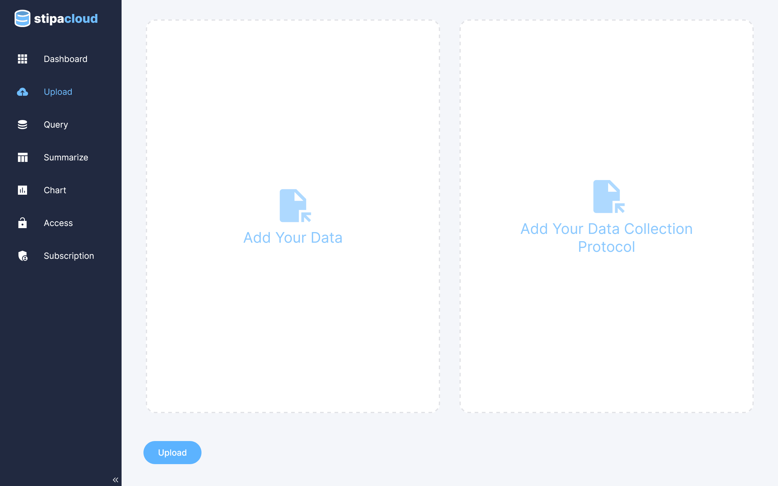Upload any data conforming to the Stipa Data Collection Specification. Learn How.